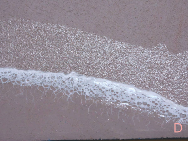 波の進む先には水で薄めたさざ波をうすく塗って、前の波が砂に染み込んだような感じをつくります。(C)