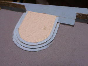 階段を中心にして、全体がなだらかなスロープになっているので、これを粘土で表現します。但し粘土はそのままではスチレンペーパーに馴染まないので、粘土を盛る場所には