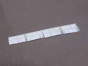 防砂柵はデザインナイフで紙に細かな切れ込みを入れ、それを広げながら0.3mm厚のプラ板を細く切ったもので固定してみました。