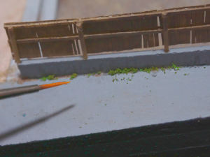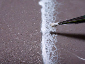 砂浜を表現するのに使った下地塗料を水で薄め、ステージ部分の溝や影になる部分に少量塗って、これが乾く前に「浴びっこサンド」撒きます。