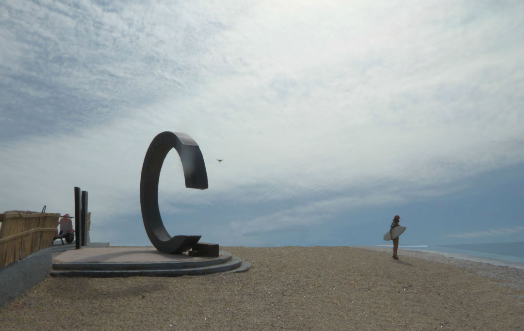今回のモデルになったのは、言わずと知れたサザンビーチ、3つ目のアイテムとしてこのモニュメントをこれからつくる予定です。遠方に小さく見えるのは烏帽子岩、でもさすがに