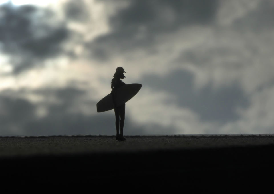 海岸とバイク、主役のサーファーが一人という実にシンプルなジオラマで、大きさは27cm×い18cmのA4に満たないサイズです。