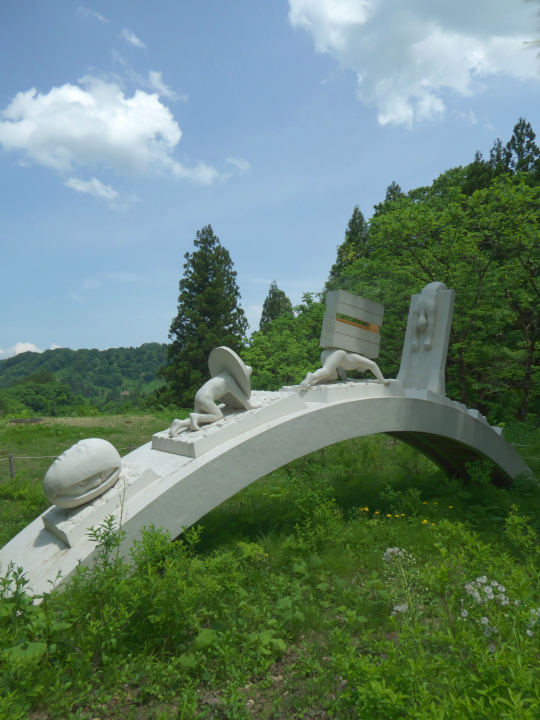 ほくほく線とJRが乗り入れている十日町駅の西側には、西口公園と呼ばれるそこそのの大きさの公園があって、こちらではたくさんの立体造形が楽しめます。