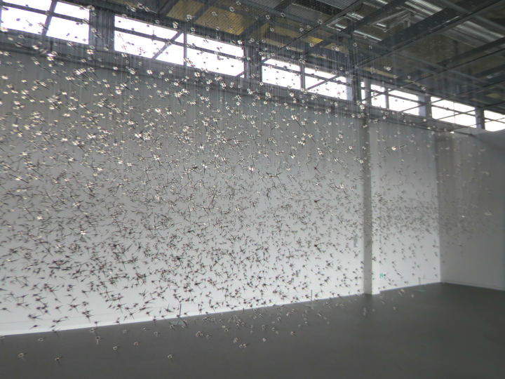 近づいてみたら、テグスの先に吊り下げられていたのは無数の時計のムーブメントだった。しかもどれもがちゃんと動いている。