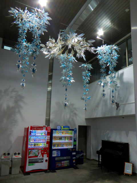 こちらは、ほくほく線十日町駅のエントランスにある吹き抜け空間に飾られているシャンデリアで、空や風、ひかり、そして雪を表現しているそうです。