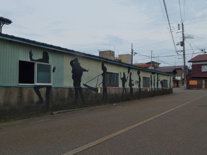 工場の壁に壁画が描かれていました。芸術祭のマップにないので、高校生が描いたものかもしれないと思いました。