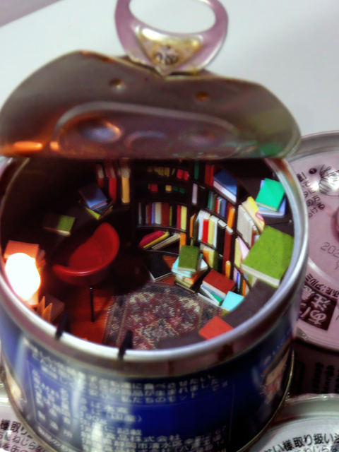 MOZUさんの作品の特徴としては、リアルサイズなものとミニチュアを同じ空間内に置いて、あたかも本当に「こびと」がいるようにみせているところなんだろうな。