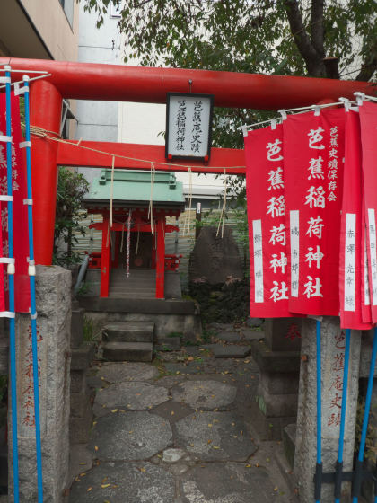 その万年橋に近いところに「芭蕉稲荷神社」があります。ここはもともと芭蕉が庵を構えたところです。