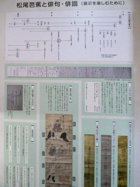 芭蕉記念館に展示されているのは様々、こちらは芭蕉直筆の手紙や俳句などで、他にも人物相関や交流の記録などがありました。