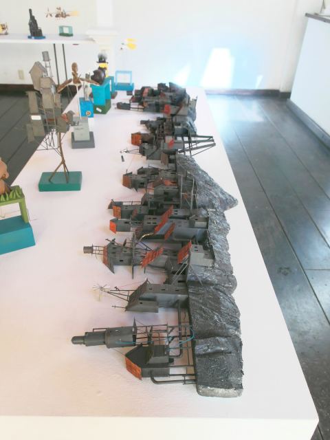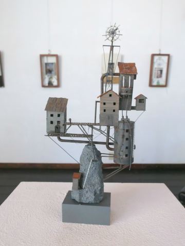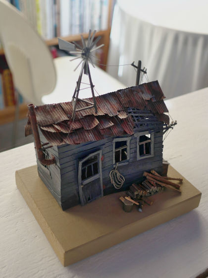 2025 ギネス記録の版画 2025.02.15 SAT 天気:晴れ 9:45 最近は下野国にあった遺跡を巡り歩くことが多いのですが、この日は下野国分寺跡を訪れてみました。 下野の国というと、現在の栃木県の旧名と言っても良いと思いますが、その中心地は現在の下野市、栃木市、小山市にまたがる田畑のひろがる場所にあったと伝えられます。 ![]() ただただひたすら真っすぐな道が続きます。まさに栃木って感じだな。 ![]() 今回のお散歩旅の起点は、こちらの「しもつけ風土記の丘資料館」です。情報収集もかねて最初にやってきました。一帯にある数々の資料館同様、こちらも無料で公開して います。 ![]() 最初の展示室は古墳時代を再現、解説しています。その中央にどんと置かれているのが、こちらの「甲塚古墳埴輪」です。機織りをしている女性を表現したもので、他に例を 見ないものだという。(国指定重要文化財) ![]() これだけ完璧な形で出土しているのがすごい。 「おーい!はに丸」に出てきた「ひんべえ」にそっくり。というか、きっとこの埴輪がモデルになっているに違いないと思った。 下野の国が発展したのは、前にも述べたように飛鳥時代に下毛野朝臣古麻呂(しもつけのあそんこまろ)が、下野薬師寺を創建したことが大きいとされる。 下毛野朝臣古麻呂は都で参議として活躍し、様々な部分でこの地域の発展に寄与した。 ![]() 奈良時代になると更にこの地に国分寺が建設される。 上の画像は奈良時代につくられた「紫紙金字金光明最勝王経」ですが、残念ながらこちらはその写本で、本物なら国宝。 ![]() 近くには国分寺跡、国分寺尼寺跡という国の指定史跡があります。(上の復元模型は国分寺) ![]() すごいね、本当に無料で公開しているのがすごい。 ![]() 資料館の前に唐突に置いてあったタクシーです。 よく知らないキャラですが、いちおうのっけときます。 ![]() 10:20 せっかくやってきたので、公園として整備された一帯をお散歩します。 こちらは国分寺尼寺跡。 ![]() そして下野国分寺跡。 下野国分寺跡は741年聖武天皇の詔によって全国60数か所に建てられた国立の寺院のひとつで、総国分寺である奈良の東大寺と同じ形式でつくられているそうです。 遺構としては、盛土と基礎石ぐらいしか残っていないので、あとは想像力に頼るのみ。あと右画像にあるように、建造物が描かれた透明板が設置されているのが、想像力の 僅かな助けになります。 ![]() あとは何もなく、ただただ広い。発掘調査によればお寺の敷地は東西413m、南北457mあったそうです。 そしてこの国分寺を中心として、数kmの範囲内に、国分寺尼寺、下野国庁舎、下野薬師寺、更には摩利支天塚古墳をはじめとする多数の古墳群、遺跡群があって、 おそらく飛鳥、奈良時代までは、ここに都に匹敵するような景色があったのではないかと思う。 ![]() 今はいちめんに田畑のひろがるところではあるけれど、その昔、東国の中心がここにあったことは間違いなさそうです。 ![]() 12:05 お腹空いたので壬生にある「蕎香」というお蕎麦屋さんに行ってみました。お昼のお蕎麦セットがお得(1200円) こちらはソバ農家が始めた手打ちの蕎麦のお店で、とっても風味豊かでした。 ![]() 12:50 那須に行くと必ず立ち寄るのが、やはりアート関連の場所、そのなかでもギャラリーバーンは作品鑑賞だけでなく、様々な情報やアイディアが得られる嬉しい場所です。 ![]() 冬場は全体に那須を訪れる人は少なくなるので、展示されているのは主にオーナーの清野さんの作品です。 こちらはペーパークラフトの家、寄せ集めた感じの全体の構成が良い。 多くは幅10cm程度のものが多いのですが、こちらはいくつかつなげて2mもの長さがある。 聞けば「大きな奴をつくってくれ」というオーダーがあったのだとか。 ![]() ここまで長くつながるとジオラマだね。 自分だとここに自動車や蒸気機関車を走らせて、たとえば炭鉱の町などをつくってしまいたくなるけど。 ![]() こちらは立体的なコラージュ作品の新作、素材の質感が良くいかされているのが特徴です。 こういう特殊効果みたいなものは製作のテクニックとして参考になります。 ほかにもいろんな材料から様々な作品がつくられています。 自分もそうだけど、いかに幅広い多様な材料をそろえられるかが、作品作りにおいては重要な要素になる。 ![]() 下にあるミニカーは市販品のようだけど、汚し方錆びさせ方が絶妙です。 小さいものもやり始めるのかな? ![]() そう思ってうろうろしてたらこんなものを見つけました。4cm×2cmぐらいのホーローの器をプールに見立てて、実に小さなジオラマがつくられていた 田中達也氏とは違って、こちらはリアルな世界を再現している。フィギュアは1cmに満たないから、もしかしたら1/200スケールのZゲージ用のものかもしれない。 「すごい、塗り分けてる!」 ![]() これはもっとすごい。 砂利で岩場をつくり、そこから流れる滝を再現している。その崖の上には体長5mmぐらいのリアルな馬(ちゃん