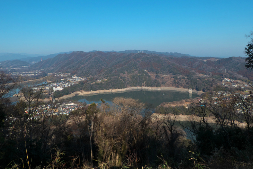 山頂の本城曲輪からの景色です。眺望は良好、津久井湖から相模川上流の様子が見えます。